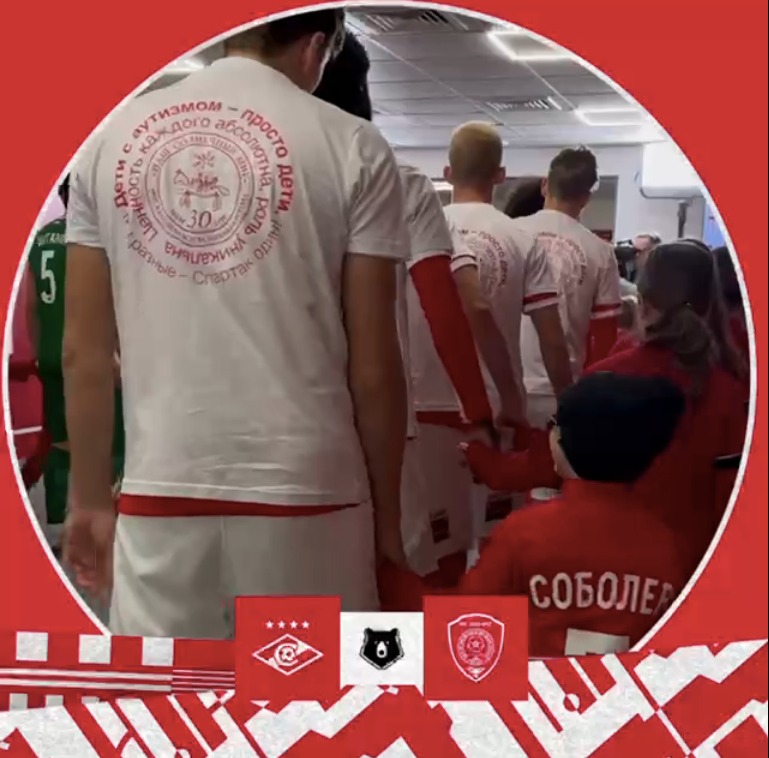 Футбольный клуб «Спартак-Москва» провёл акцию, посвящённую Всемирному Дню распространения информации о проблемах аутизма. Перед матчем на огромных экранах стадиона крутился видеоролик, подготовленный участниками проекта «Социализация» и педагогами нашего Центра. Его девизом стали слова: «Мы разные, но мы очень похожи»! Диктор на стадионе призывал всех к пониманию людей с особенностями развития, к поддержке «Нашего Солнечного Мира», который помогает им наладить полноценную жизнь в обществе. Символическим знаком поддержки людей с аутизмом и их семей стал выход футболистов на поле в форме с логотипами «Спартака» и «Нашего Солнечного Мира»! Тысячи «красно-белых» на стадионе и ещё более многочисленная аудитория у телеэкранов приветствовали благородную акцию клуба!